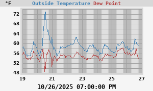 This week's min: 56.5°F at 07:32:11 AM (Sunday)
